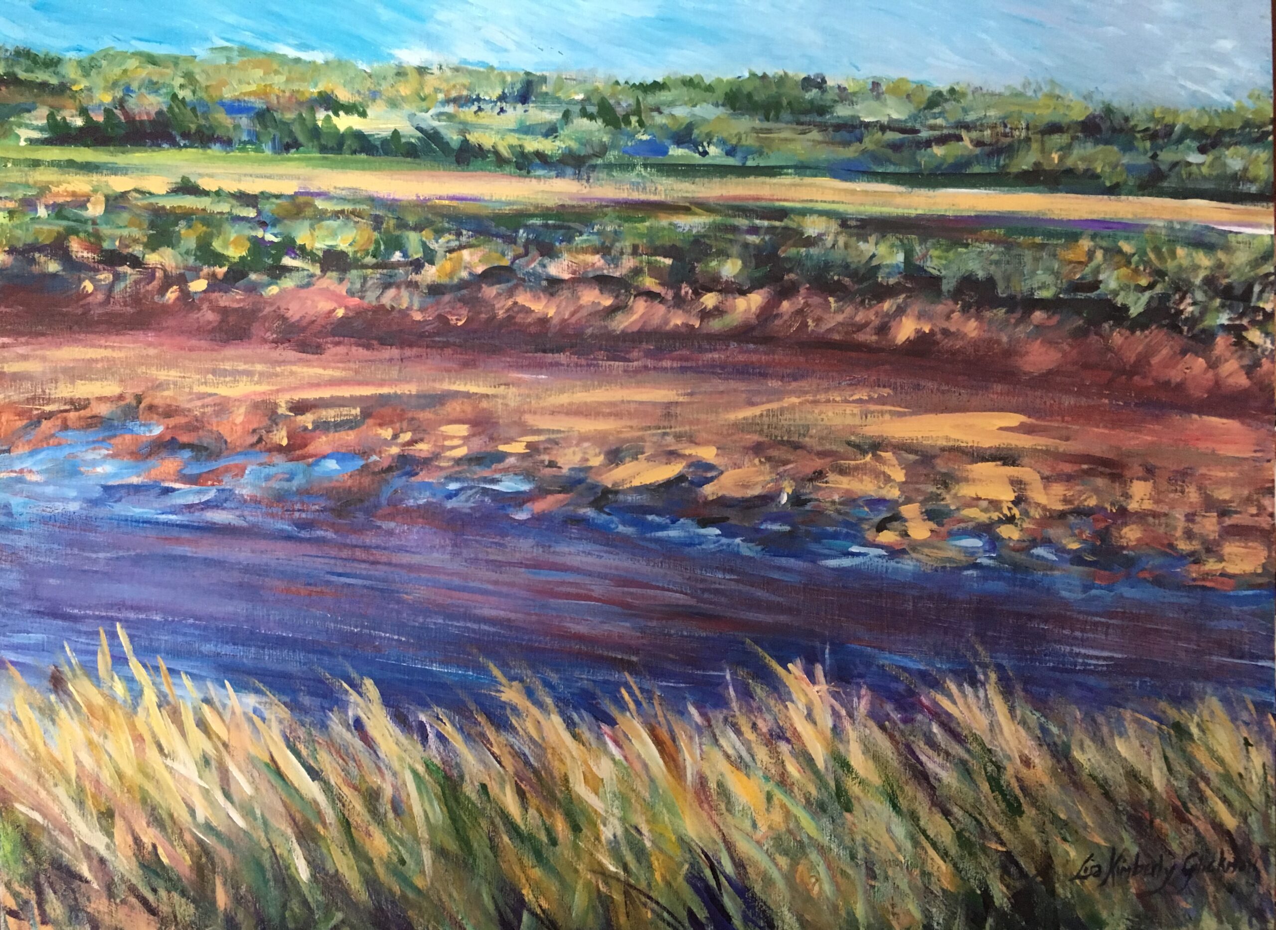 The complementary colours of the tidal river at the end of a summer day are difficult to describe, so I had to paint them.